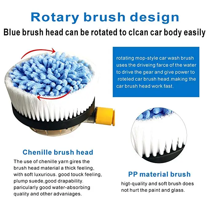 Car Wash Brush Automotive Cleaning with Long Handle Automatic 360 Degree Garden Sprinkling Tool Use
