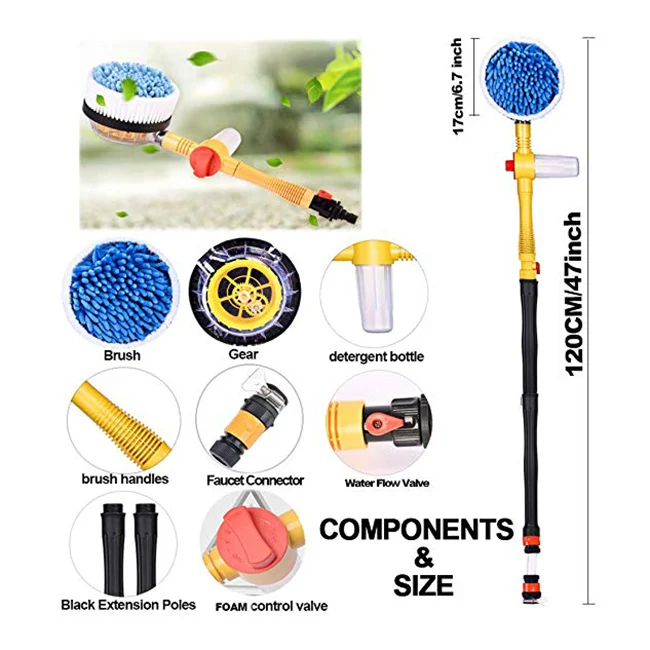 BEST Car Wash Brush Automotive Cleaning with Long Handle Automatic 360 Degree Garden Sprinkling Tool Use