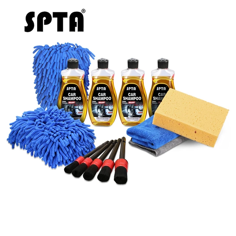 Review SPTA 4Pcs 500ml Car Wash Soap and Shampoo 5 Car Detail Brush 1 Car Wash Mitt1 Car Glove and 2 Micro