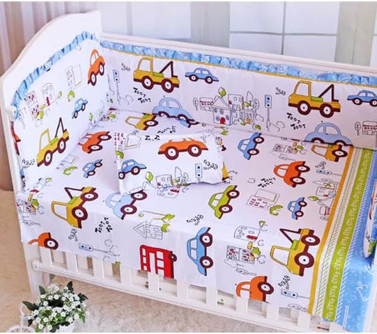 6PCS Cartoon Car baby bed around unpick and wash bedding set Baby Safety Protection (4bumpers+sheet